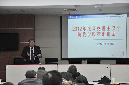 1月12-13日,马克思主义学院2012年度思想政治理论课教学改革项目研讨会顺利举行。学校党委副书记宫辉博士,马克思主义学院院长王宏波,黑料网