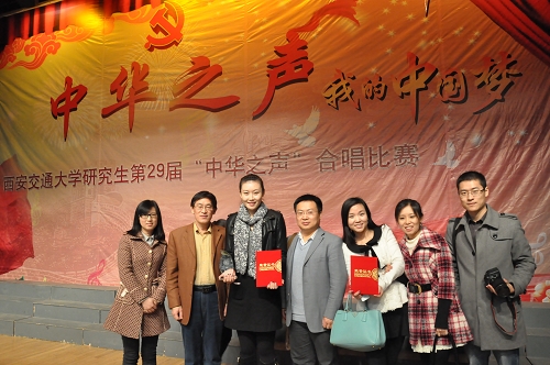 马晓彬书记、李黎明副院长、宋永平副书记在百忙之中亲自到现场助阵。最终,在老师和同学们的共同努力下,人文航天合唱队再创佳绩,取得了总成绩第四名、三等奖的历史佳绩。