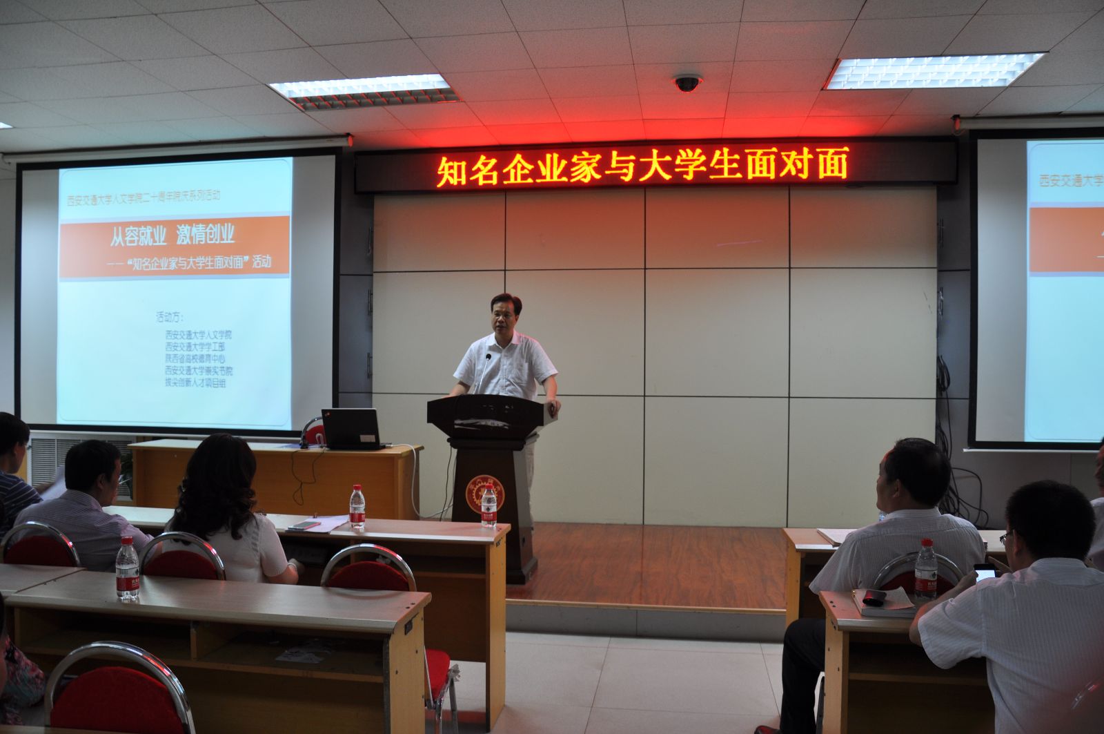 马晓彬书记作活动总结。他首先指出本次活动的目的;“我们的活动不是为了哗众取宠,而是为了让学生和企业家进行实实在在的交流与学习。”之后又对学生寄予了厚望,“两位企业家的形象和气质代表着他们学校和企业的形象,我们的形象和品质决定着交大的形象与品质。所以,我们要有责任感、有担当。”