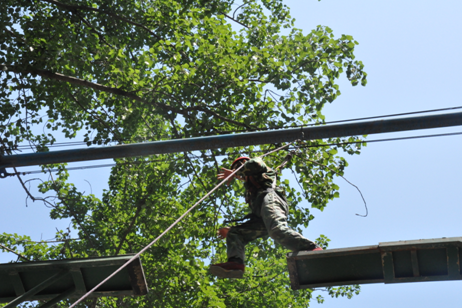 早上八点半户外拓展训练正式开始。同学们纷纷换上营地提供的迷彩服,个个精神抖擞,听候教练员的指挥。