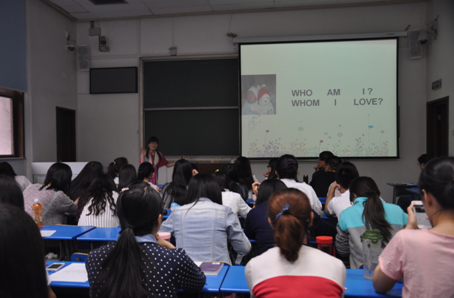 讲座开始,李红燕老师从“有没有那么一个人……?”的问题入手,引出“自己”,吸引了同学们的注意力,引得同学们阵阵笑声。随后进行了感受自己呼吸、再度认识自己的互动活动。在讲座中,李红燕老师指出人一生有八个阶段,每个阶段都有一个特殊的矛盾,矛盾的顺利解决是人格健康发展不可缺少的条件。她针对“我是谁”、“想要什么”、“人生目的意义是什么”等心理问题,结合当下热点,通过视频和小测试,用幽默诙谐的语言,带领同学们进行了一次探索自己内心世界的旅行。