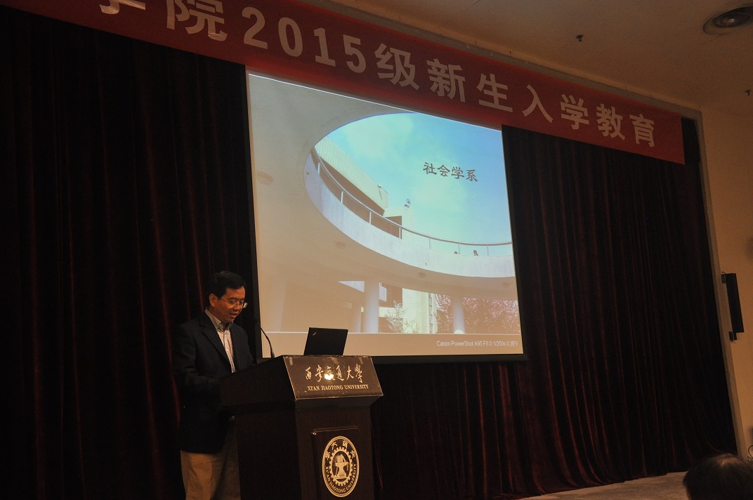 各系所主任也从系所概况、师资队伍、毕业生去向等几个方面向新生介绍了各个专业的情况。哲学系的张帆教授强调了哲学学科体系和人才培养体系的完备性,拥有多个二级学科,热切希望有兴趣的本科生能进入哲学系学习;社会学系的张顺教授则用详实的数据,介绍了社会学系的师资队伍情况、学生就业及科研成果现状,展示了社会学良好的发展现状和态势;中文系李明德教授以优美的文学语言向大家展示了选择学习中文的魅力及其重要意义;艺术系的张伏虎教授介绍了艺术系的发展以及艺术系毕业生们大好的就业、创业现状和前景,希望同学们能在艺术系学有所获、学有所成;书法系薛养贤教授富有激情的向大家展示了书法专业的魅力,他希望书法系的学生能把书法作为职业的同时,更要作为事业去追求。