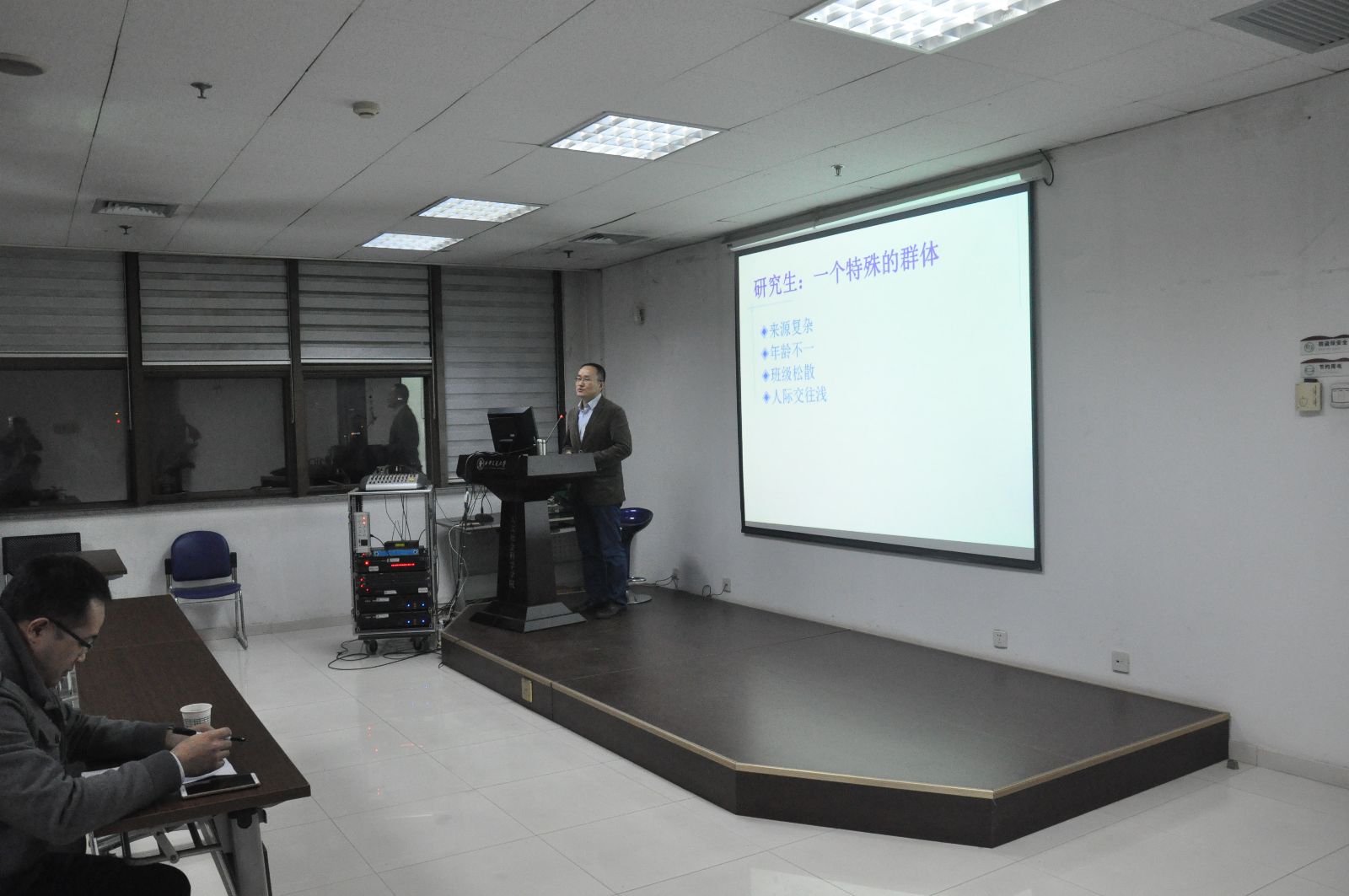 姚斌老师用风趣幽默的语言向同学们讲述了自己对心理健康、心理问题的见解,提出相对于本科生,研究生面对诸如科研、人际、婚恋等多方面的压力更容易产生心理问题的观点,并分享近年来自己为研究生们所做的心理咨询的经验。“心理危机并不可怕,只要能与人及时沟通,发现同学存在类似情况及时报告就可以把危害降到最低。”提到研究生如何解决心理问题,姚斌老师如是说。