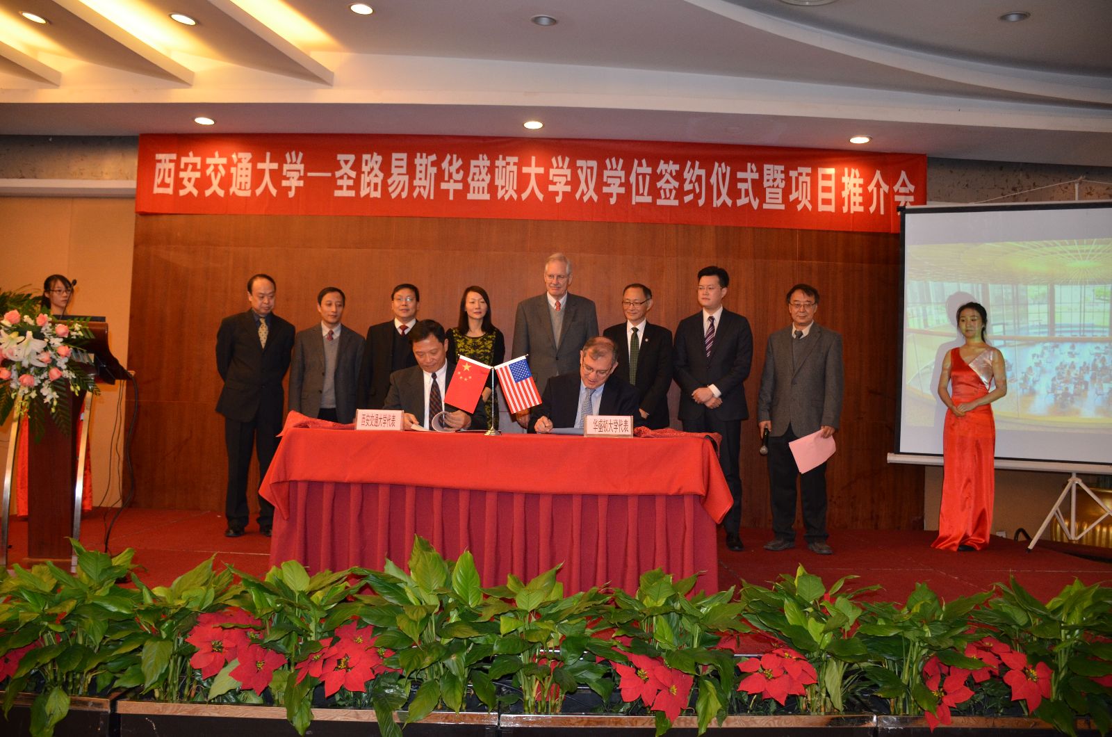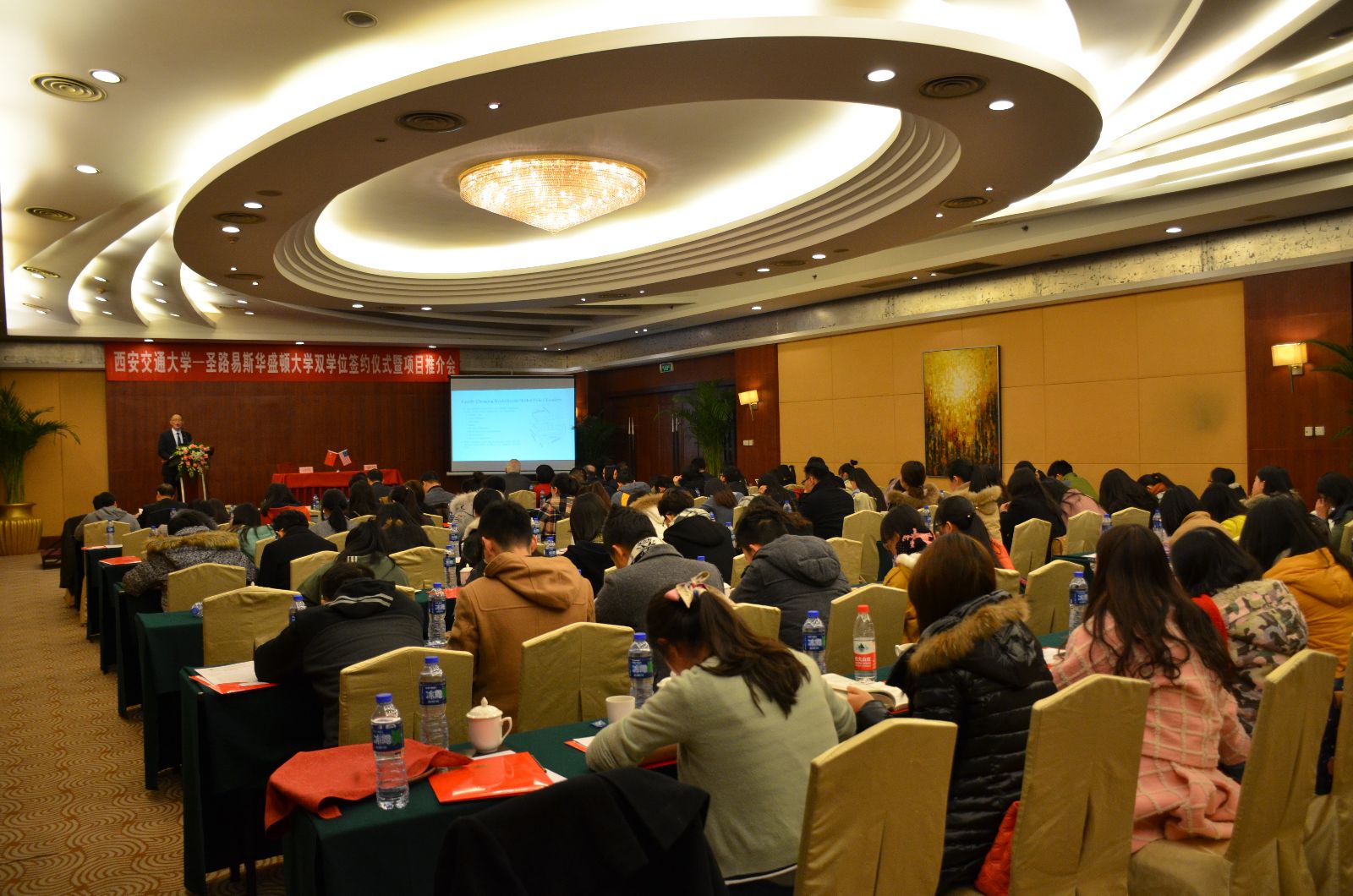 ——圣路易斯华盛顿大学(下称:华盛顿大学)双学位签约仪式暨项目推介会议如期在索菲特酒店举行。圣路易斯华盛顿大学副校长James Werstch、布朗学院院长Edward Lawlor、助理副校长郭申阳教授以及华盛顿大学校友、贝塔斯曼·欧唯特(中国)副总裁徐欣,我校国际合作与交流处处长梁莉、研究生院副院长何茂刚、黑料网