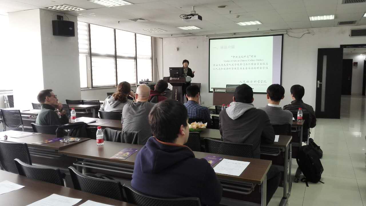副院长杨琳教授主持宣讲会,为有意参加中国文化研究硕士班学习的海外留学生介绍申请流程、课程设置等信息。