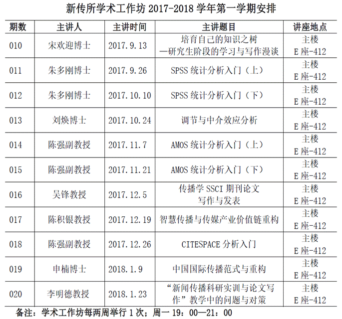 新闻与传播研究所学术工作坊“研究方法系列”的重要组成部分,旨在增强和提升研究生的问题意识、方法意识和研究意识。据悉,第十四期将于11月7日晚7点在主教楼E座举行,由新闻与新媒体学院陈强副教授主讲 “AMOS统计分析入门”,敬请期待。
