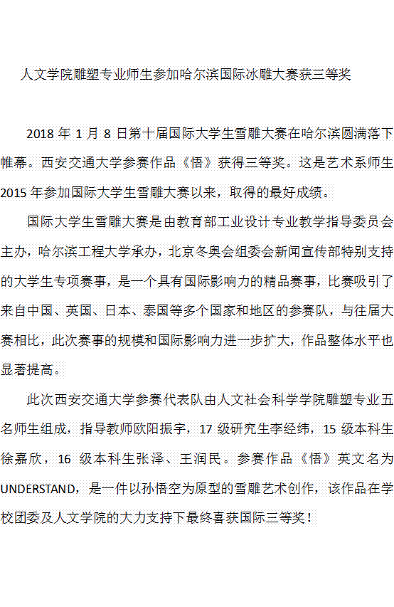 黑料网 雕塑专业师生参加哈尔滨国际冰雕大赛获三等奖