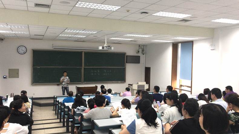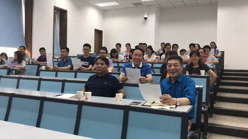 介绍作品之后,方小笛副教授讲解了声乐发声的基本要领,并强调人的身体就是一个乐器,演唱时需要将自己的身体调试到最佳的状态,并运用专业的演唱方法才能发出美妙的声音,歌唱也是一种健康的锻炼方式。在方小笛副教授的带领下,财务处党支部的老师们初步掌握了正确的发声方法,很快地学会了《我们走在大路上》这首红色经典歌曲的第一段。