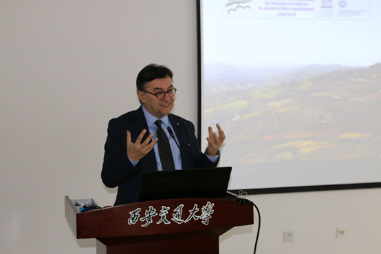 仲英楼展开研讨座谈会,其中许楗教授与意方专家分享学习习近平总书记对自然环境保护及文化遗产保护的相关执政理念,Marco Valle博士非常赞同习总书记谈到的绿水青山就是金山银山的环境保护理念,并分享了意大利对于景观大遗址保护的经验。双方就不同的文化背景、不同地理环境背景条件下,共同针对乡村农业景观遗产、土遗址博物馆、建筑遗产、雕塑等文化遗迹的有效保护展开了深入的研讨交流,分享了双方在专业领域研究的最新成果,并讨论及梳理构想了今后合作的整体框架。