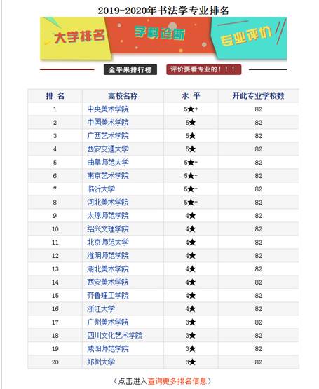 附书法专业(82所高校)排名完整名单: