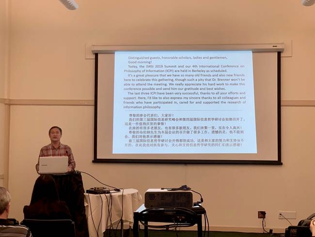 2019年6月2日至7日,由国际信息研究学会(IS4SI)和多国机构联合举办的第三届国际信息研究峰会暨第四届国际信息哲学研讨会在美国加州大学伯克利分校召开,本届峰会的主题是“人工智能中的自我在哪里?信息中的意义在哪里?”。峰会由国际信息哲学研讨会、信息科学研究会议、理论信息研究会议等3个子会议,以及其它6个分论坛组成。来自欧洲、亚洲和美洲的120多位专家学者参加了此次会议。