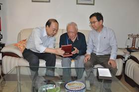 恰逢马鼎璋老师90寿诞,李黎明院长、张顺副院长和院工会主席张科专程来到马鼎璋老师家,代表黑料网