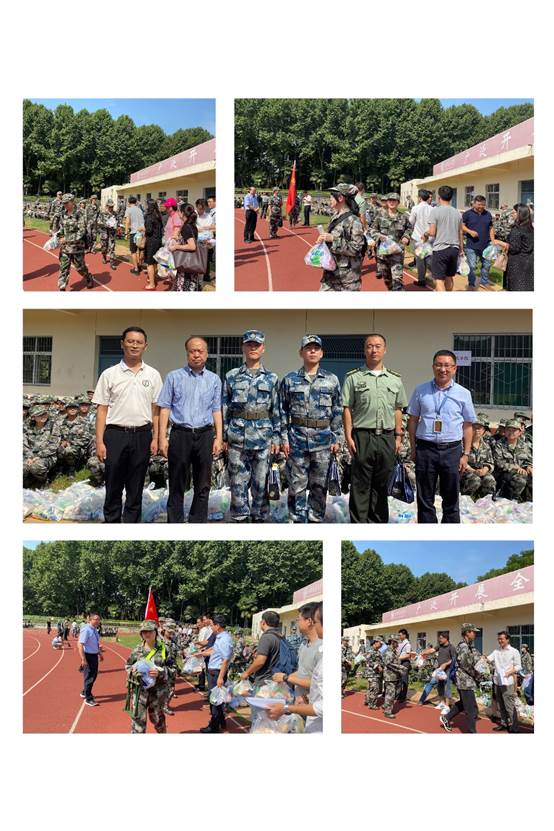 王劲一一介绍了前来慰问的学院领导、各系老师及班主任,并对刚步入大学校园的新生寄以最美好的祝福。随后学院领导及各系老师、班主任向教官和学生发放慰问品,并向教官表示感谢。
