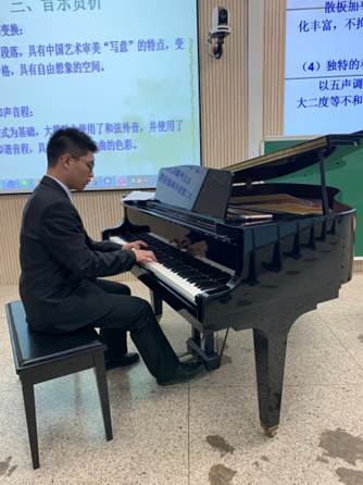 在方老师简要梳理了中国当代钢琴音乐的创作及代表作之后,课程采用边讲边演奏的方式,演奏了我国当代具有代表性的钢琴作品。