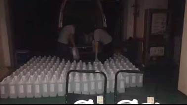一线工作人员连夜加班加点生产制作消毒剂用品