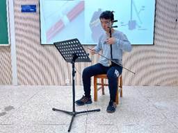 在作品鉴赏环节,文茹老师还邀请了我校电气专业大一的同学王子畅为大家现场作二胡演奏展示,让同学们零距离的感受二胡这件中国传统乐器的音色与丰富的演奏技巧。除了演奏二胡协奏曲《长城随想》音乐主题之外,王同学还现场演奏了二胡经典作品《赛马》《兰花花叙事曲》《风居住的街道》等作品的片段,多角度展示了这件乐器的独特魅力,课堂上同学们的热烈掌声不断响起。