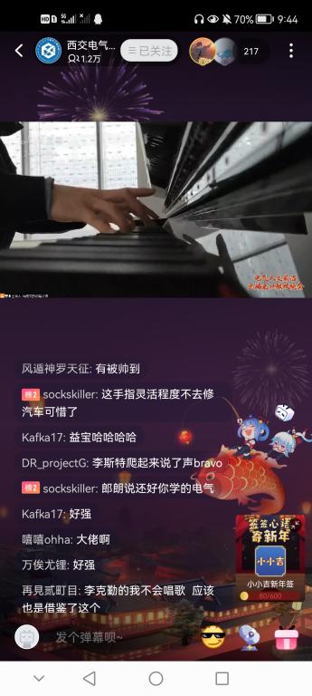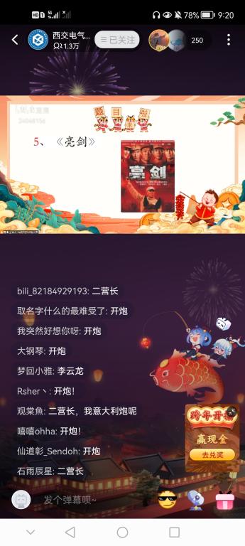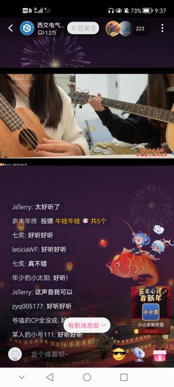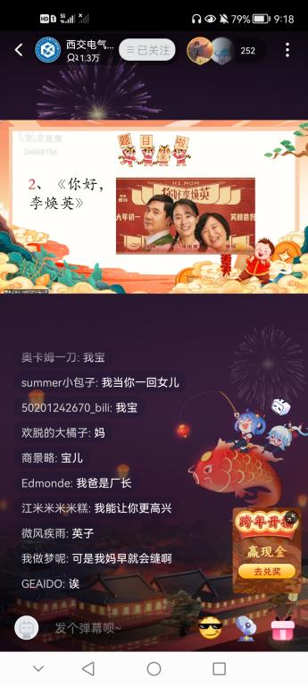 晚会节目种类多样,精彩纷呈,其间还穿插趣味十足的“猜歌名”、“猜经典影视剧台词”等线上小活动,并由主办方提供了精心准备的小奖品,激起弹幕评论区的热情参与,“好听”、“好强”等赞美语频频刷屏。此次三院元旦晚会直播间的观看人数一度高达1.4万人次。
