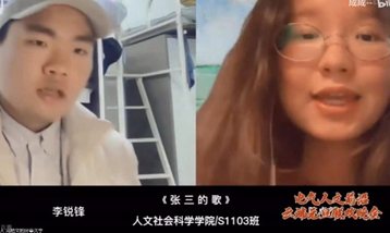 刘保辰等同学带来的书法展示《以艺战疫,长安常安》赞美了抗击疫情中的“逆行者”们,引发了同学们的共鸣;陈卓然、李锐锋同学对唱歌曲《张三的歌》,表达了对美好生活的向往和对未来的期盼;葛雅南、王廷威等同学带来的诗朗诵《西望长安》表达了对古都长安的祝福;社会工作专业同学合唱的《我和我的祖国》,经典旋律激起同学们浓浓的爱国情……