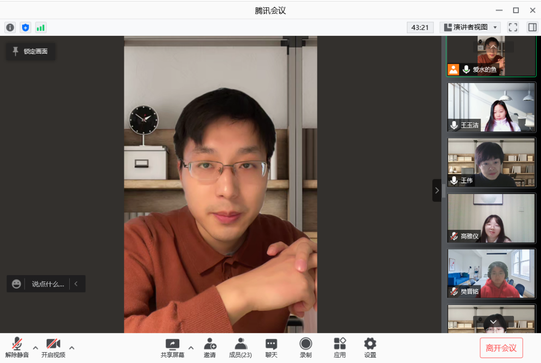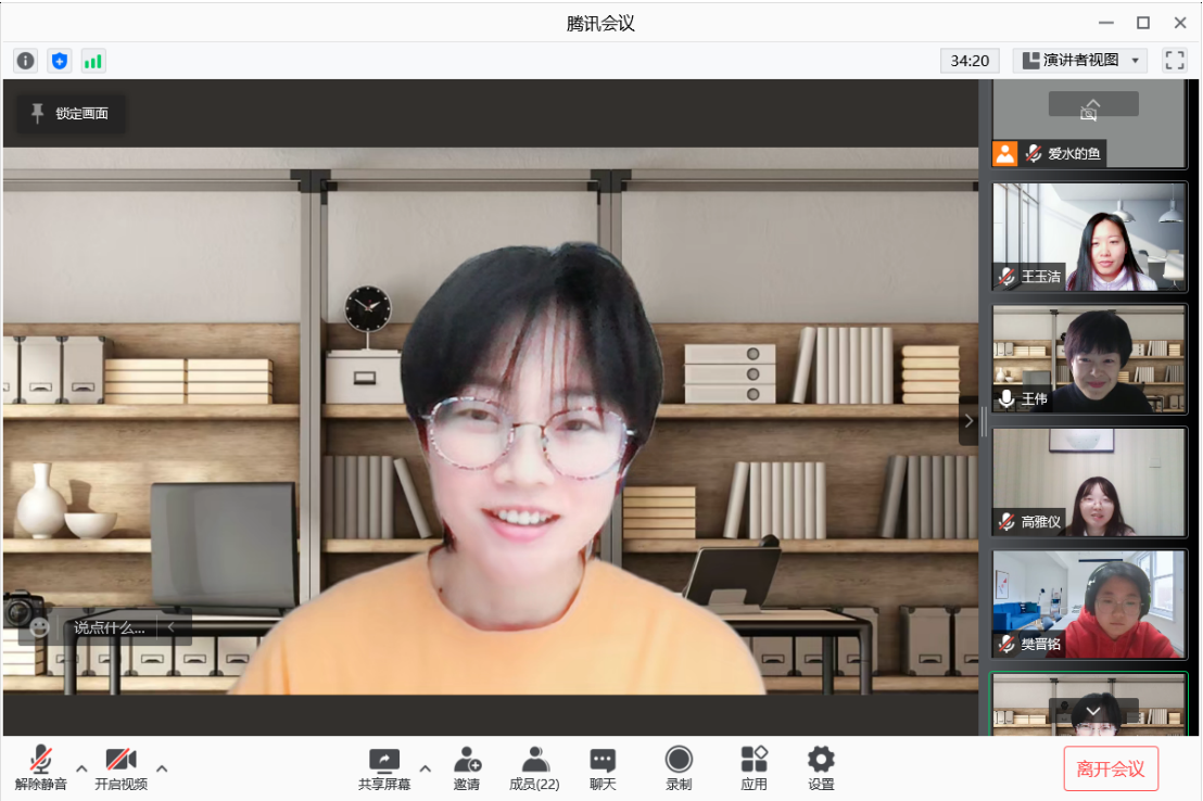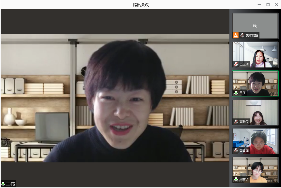随后,大家积极分享在疫情下的生活和学习现状。兴庆校区的高雅仪同学说道,兴庆校区物资可以得到保障,同学吃饭不成问题,学生情绪一切稳定。创新港校区的鱼洋同学说道,很感谢学校的关心和温暖,创新港宿舍基本的物资可以得到保障,建议同学们不必恐慌去抢物资,静心学习和生活。莫小枚分享了在校外租房的生活状况,目前物资稍有欠缺,但相信政府的力量,日常生活可以得到保障。王伟说道,学院一直很关心同学们的学习和生活,希望同学们不必恐慌,健康平安的迎接新年。