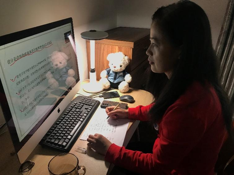 研究生主讲《设计美学》课程,在线上教学模式进行授课的过程中,她感受到学生们非常专注,努力去克服空间距离带来的不便,也使教学质量得到了保证。艺术系研一的张胜姿同学说:“今天的网络课程让我们耳目一新,从未体会过线上上课的我感到很新奇。给我最大的体会就是老师的课件十分精良,比线下投影仪更清晰,给我留下的印象更深刻;感觉老师网络授课软件用的比我们还熟,还有课上点名这样的小环节,全程开启摄像头,一点也不敢开小差;老师也十分关心我们的心理,告诉我们不要焦虑,疫情一定会过去的”。