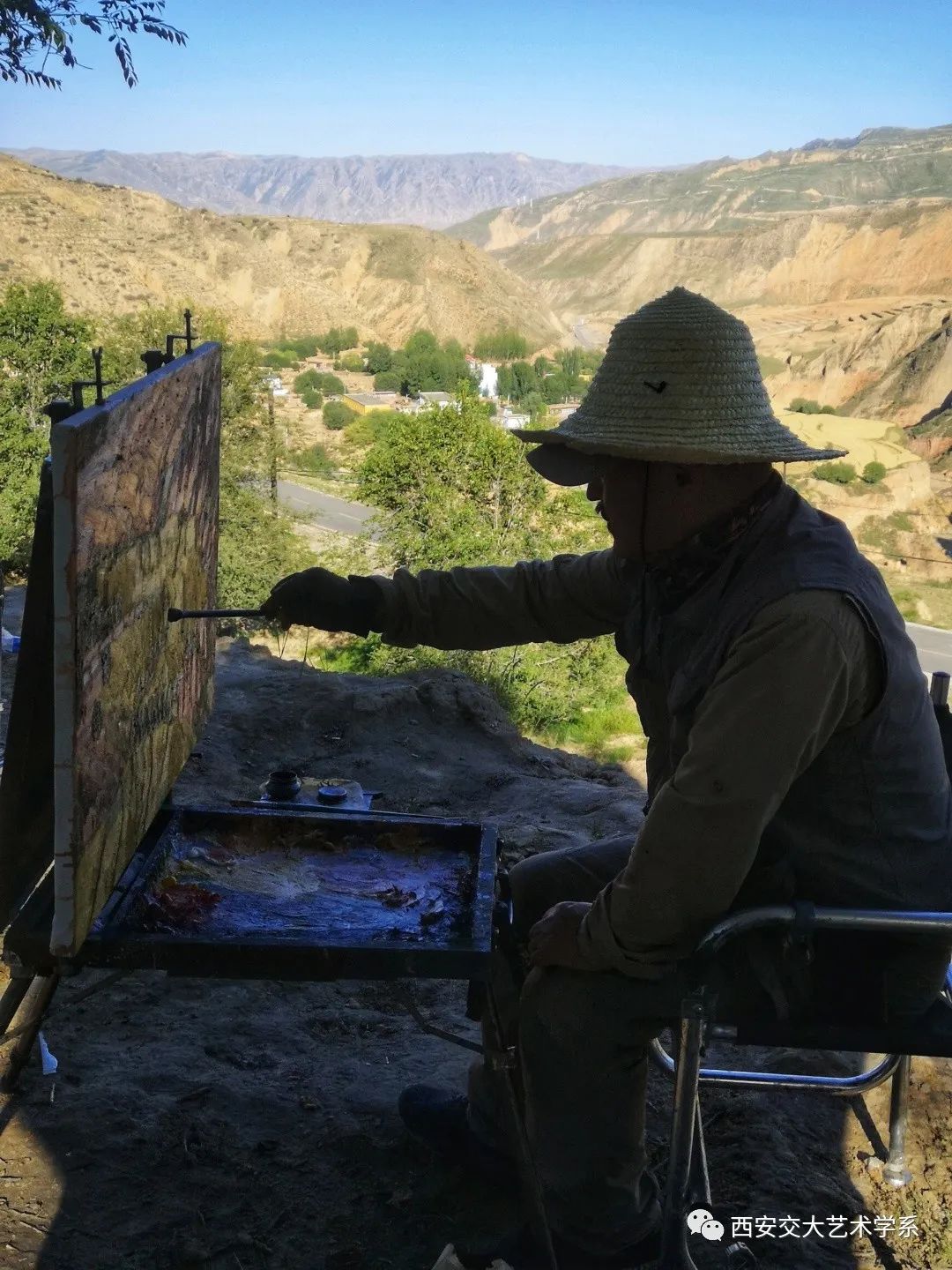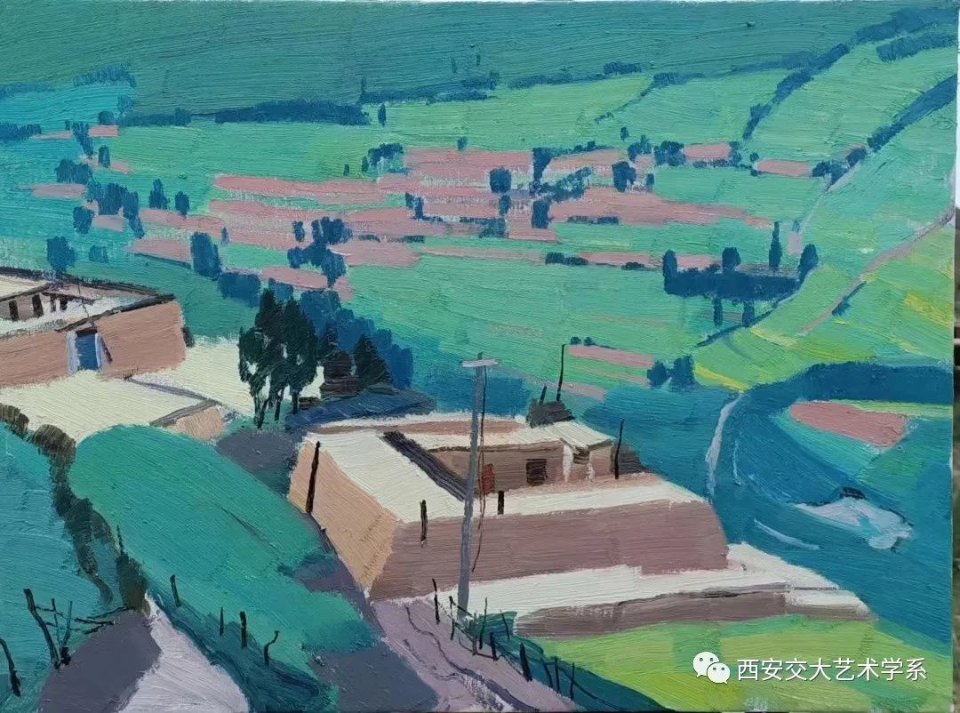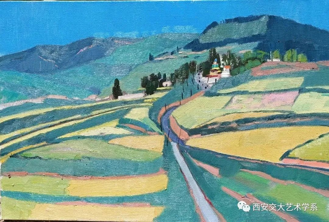 艺术系油画导师马田宽携2021级硕士研究生程童瑜与陕西省摄影协会会员王会阁女士一行三人前往青海省黄南州尖扎县进行为期两个月的采风写生,目前写生工作已近半。