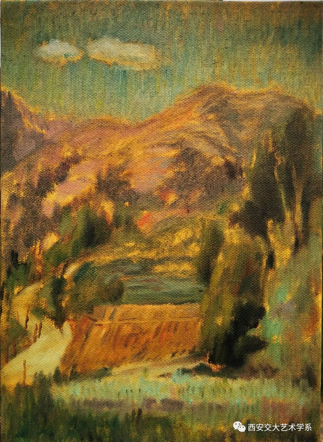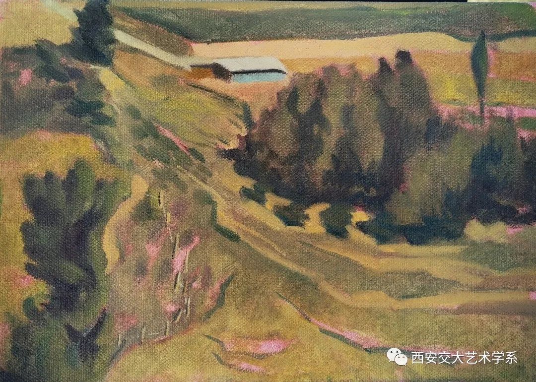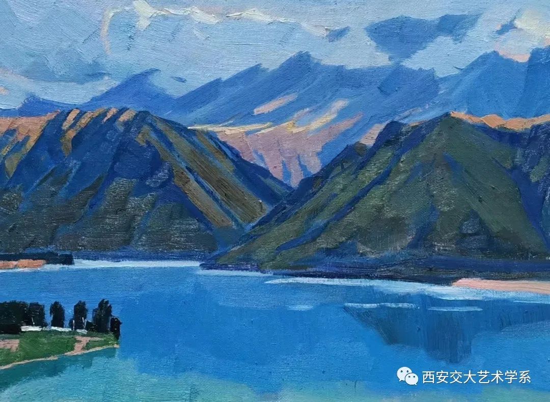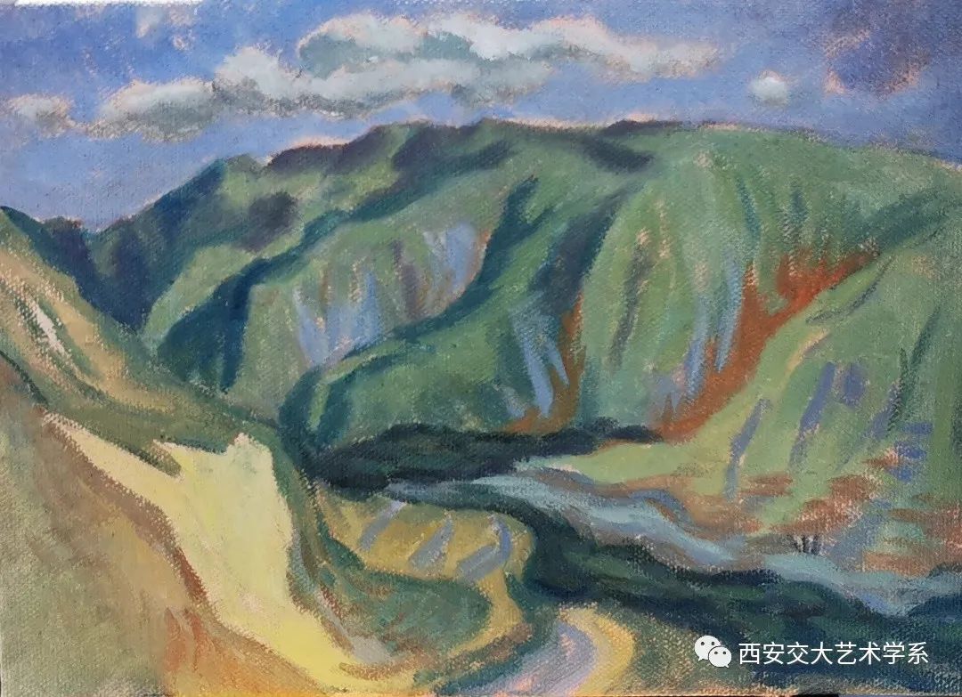 尖扎夏天灵秀神韵,是青南热土上一处天然大花园,有丹霞地貌、草原风光、麦田美景、还有民俗节日等风土人情让人感觉美不胜收,马老师总是说“尖扎太神奇太美啦,到处都是画,简直是艺术表现的题材富矿区”。在写生的过程中,马老师和他的学生持续关注当地天气预报,避免浪费时间,根据天气状况安排写生行程,每当遇到雨天或者午后高温时,便在尖扎县群众文化活动中心进行素描头像写生,无特殊情况便每天七点出发,自驾于尖扎县的各个乡镇之间进行油画风景写生。在描绘美丽风光的同时他们也积极响应当地政府“环境就是资源,生态就是财富”和“彰显乡村风情”的发展理念,希望以绘画、摄影的方式助力当地乡村振兴,将尖扎的风土人情以艺术的方式传递给更多的人们。