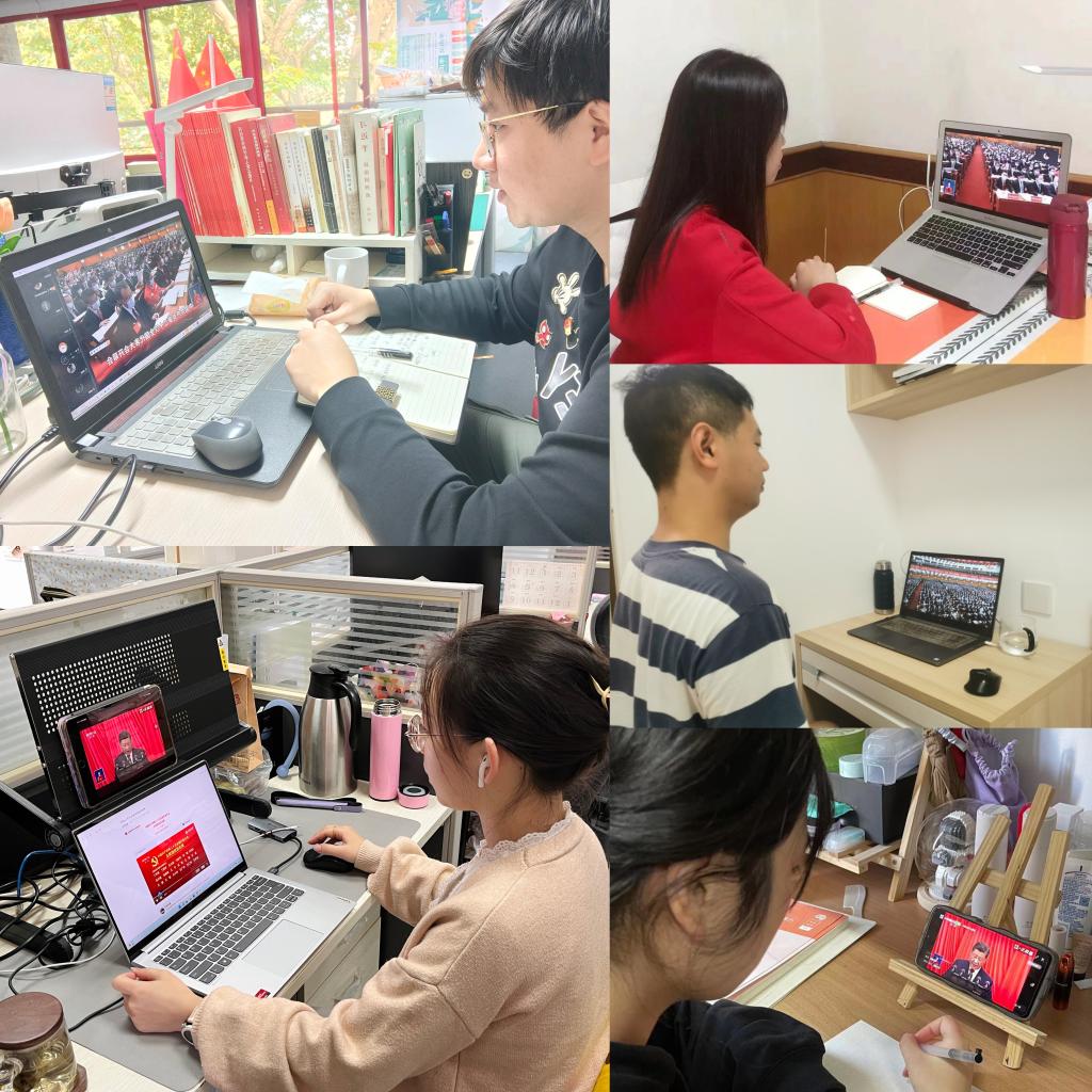 学子们备受鼓舞,精神振奋,进一步加深了对二十大的认识理解,明确了青年学子的历史使命和责任担当。硕1104和1105党支部闫君瑶同学提到,她将扎根基层,服务人民,在平凡岗位上为我党事业贡献力量。硕2113和2114党支部董玥影讲到,作为青年人,一定要扛起肩上的责任,不忘初心,牢记使命,把个人的发展融入时代和社会的需求中去,祖国需和人民需要我们去哪里,我们就在哪里挥洒青春,为早日实现中华民族伟大复兴贡献自己的力量。硕0114和0117党支部邹铭聪同学表示,作为青年学生,能够处于中华民族伟大复兴的关键节点,是感到无比自豪的,要坚定不移听党话、跟党走,知行合一、廉洁自律、好学不倦、勤政务实,青春不留遗憾,奋斗从未止步。