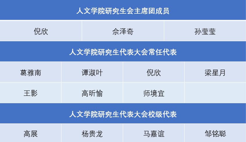 三名研会主席团成员、七名院级研代会常任代表和四名校级研代会代表。