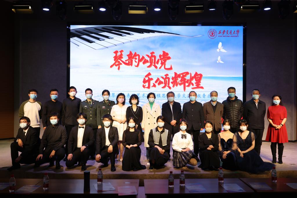 教2—1400丝路大讲堂举办了一场题为“琴韵颂党,乐颂辉煌”——《钢琴演奏表演艺术》课程思政教学交流汇报音乐会。