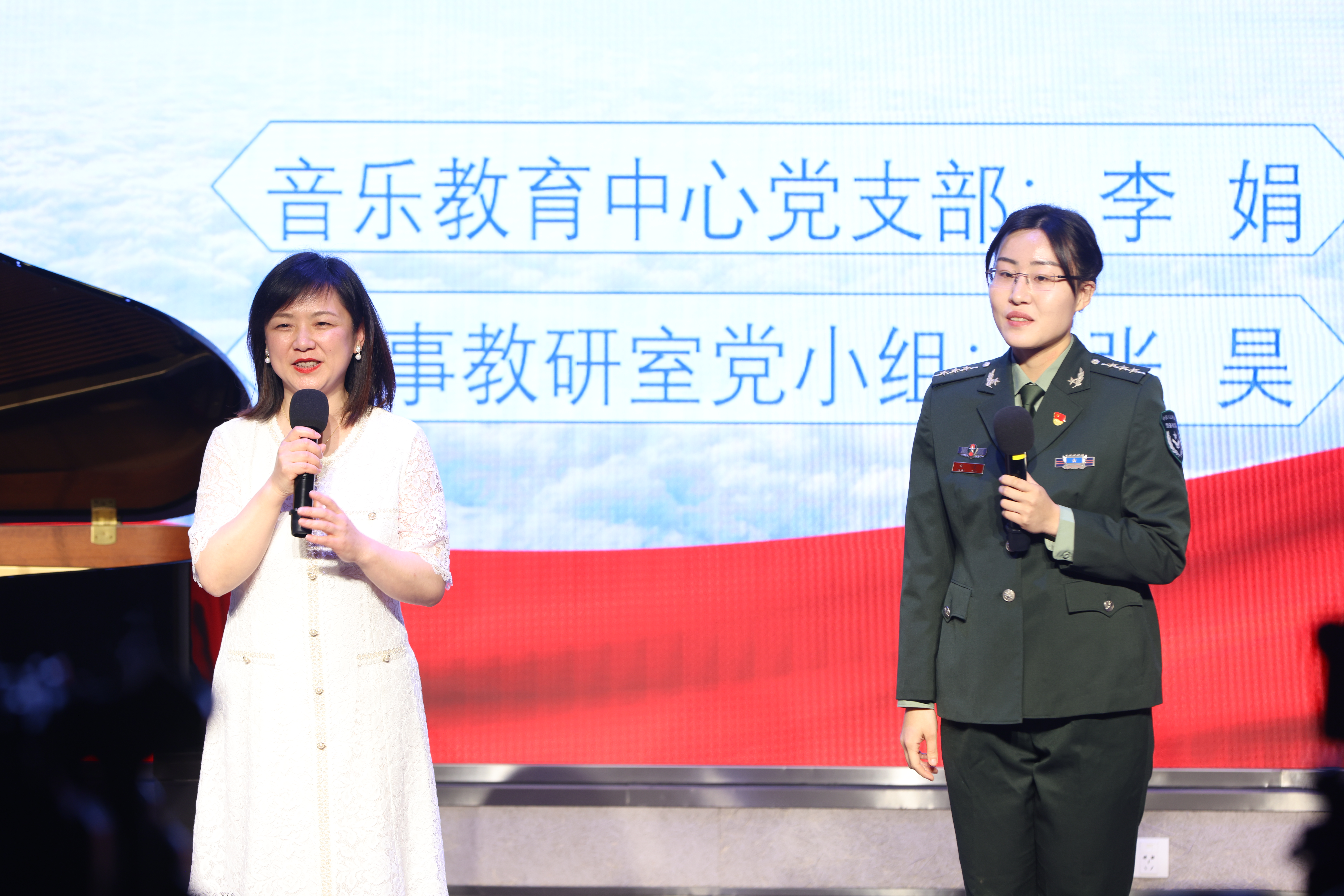 音乐教育中心党支部、军事教研室党小组联袂,与《钢琴演奏表演艺术》课程的学生们同台共述建党百年不同阶段与中国特色钢琴音乐作品创作百年发展之间密不可分的联系,党员教师现场讲述、学生现场演奏钢琴作品。不忘初心,牢记使命,以实际行动深入贯彻党的二十大精神,回顾党史,推进文化自信自强、弘扬革命文化、传承中华优秀传统文化。