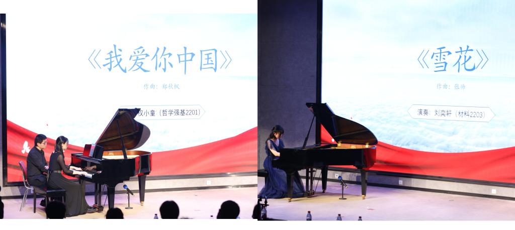 第四阶段新时代,是中国钢琴音乐多元化发展的盛世巅峰,《雪花》(演奏者:刘奕轩,材料2203)和《我爱你中国》(演奏者:权小童,哲学强基2201)这两部大家耳熟能详的经典曲目,引起了听众强烈的共鸣。