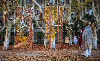近日,“城市公共艺术”通识课师生共同创作的《星空·秋夜》、《秋深·见鹿》两幅艺术实践作品亮相第四届金色梧桐节。作品以秋叶贴画的创意形式,与金色梧桐叶相映成趣,为同学们带来富有盎然秋意的浓烈视觉盛宴!