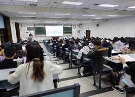随后,常帅从常见的校园安全隐患、突发火灾事件应对措施和消防器材正确使用方法三方面为大家讲解了消防必备技能,指出了拨打119消防电话的注意事项和灭火器的正确使用方法。交通安全方面,他提醒同学们要乘坐正规平台网约车、随时注意行车路线、不随意拼车,切实提高个人安全防范意识。