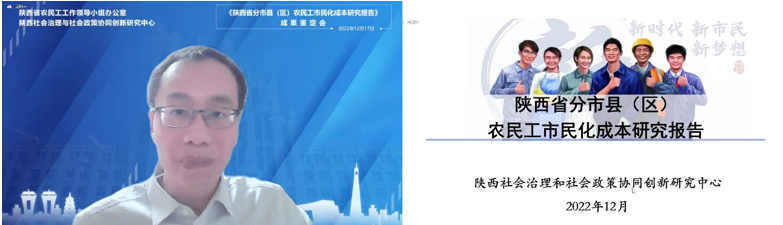 铸牢中华民族共同体意识研究中心举行“2022年度国家民委铸牢中华民族共同体意识专项课题开题”线上会议,国家民委基地处刘元如处长、南开大学原常务副校长陈洪教授等多位知名专家参加了开题。基地本次经过精心组织和申报,获批了2个课题。12月17日,陕西省农民工工作领导小组办公室和陕西社会治理与社会政策协同创新研究中心线上联合举办《陕西省分市县(区)农民工市民化成本研究报告》成果鉴定会。鉴定会邀请了五位相关领域的知名专家对成果进行鉴定。2022年,团队承接了《陕西省分市县(区)农民工市民化成本研究项目》。团队将在鉴定会后修改完善研究报告,持续围绕农民工工作服务陕西省经济社会发展。