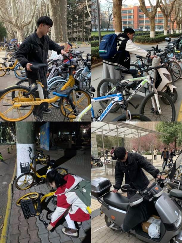 硕2112和2115党支部组织同学分别于11:30-12:30、17:30-18:30、20:30-21:30三个时间段集中在梧桐、康桥食堂周围倡导大家有序停车,并把电瓶车、自行车摆放整齐。支部成员归位不规范停车车辆,扶起倒下的电瓶车、自行车,最终形成了错落有致的排列,既方便了师生停取车,又维护了校园安全,打造文明和谐的良好校园形象。