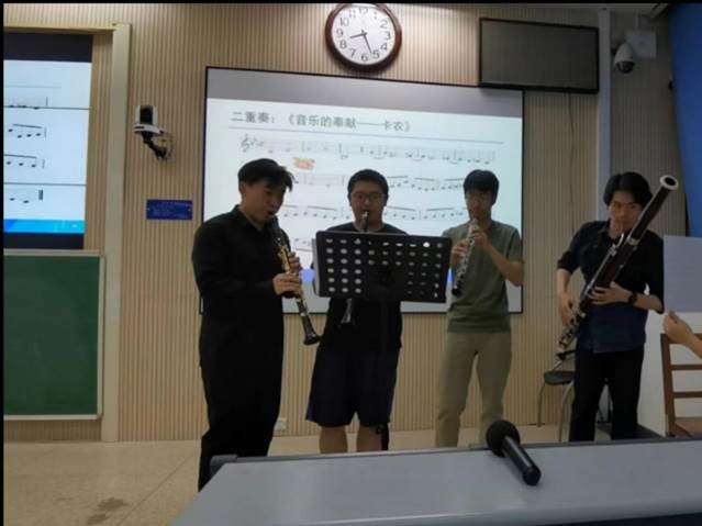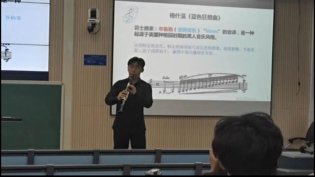 课堂现场还邀请了选修本课程的同学演奏了《蓝色狂想曲》《风居住的街道》两首作品,生动展示了音乐与数学融合的美妙之处。