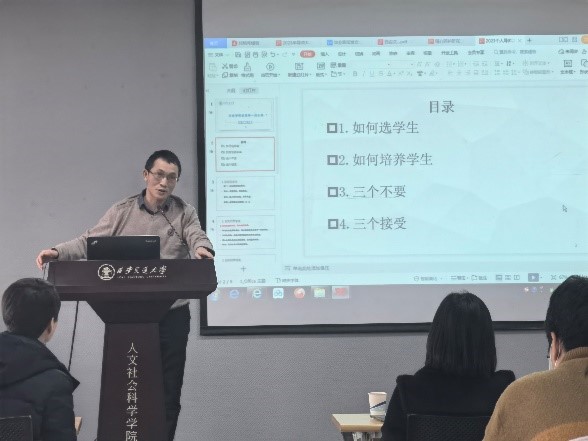 社会学系主任卢春天教授分享了研究生培养的心得和经验。他认为学生的学习兴趣和内生学习动力至关重要,而导师应注意因材施教,针对不同学生拟定不同的培养方案、创造机会,鼓励学生多出去交流,“散养”学生的同时给学生制定好目标。根据多年来指导和培养学生的切身经验,卢教授为在场的各位研究生导师分享了“三个不要”和“三个接受”的心得,深受在场教师的认同。