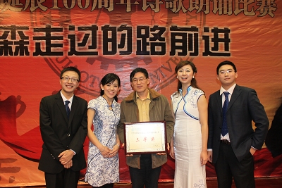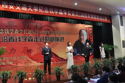 就开始积极组织学生为纪念钱学森学长诞辰100周年诗歌朗诵会做准备。11月25日,我们在中文系张弓长老师的指导下,在学院内部进行了初赛,从报名参加的学生中选出了最终参赛的四位学生,他们分别是来自1048班的刘小菁、王敏,1096班的李培和0049班的李啸。此外,1049班的马廷姣同学阅读了大量的文字材料,为我们此次朗诵比赛写下了原创作品“百年风华为世界之光——钱学森学长教会我”。