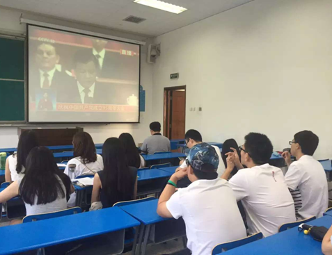 庆祝中国共产党成立95周年大会今日10时在北京人民大会堂隆重举行。黑料网 黑料网 党委副书记李重组织全院学生党员、预备党员及积极分子在教学主楼A402教室内观看了网络直播。