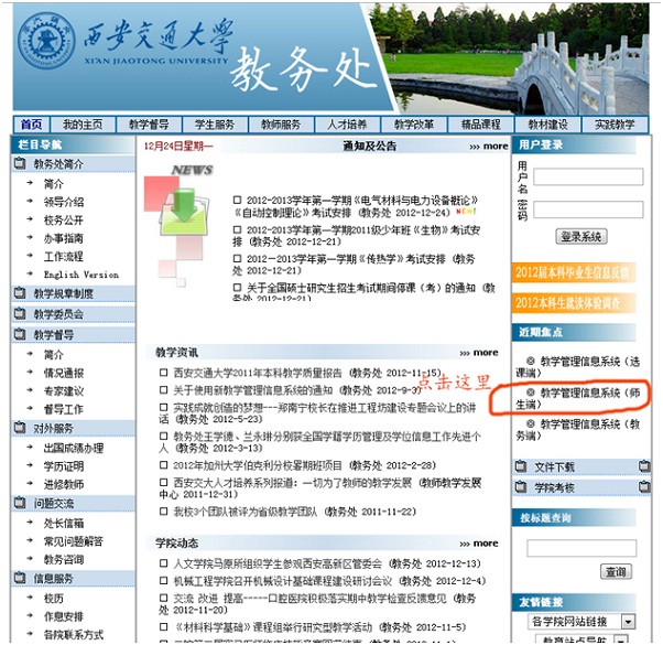1、登陆学校教务处网站//dean.hlweb8.com/Index.aspx?page=1&mod=0&article=0,点击右侧的“教学管理信息系统(师生端)”,如下图: